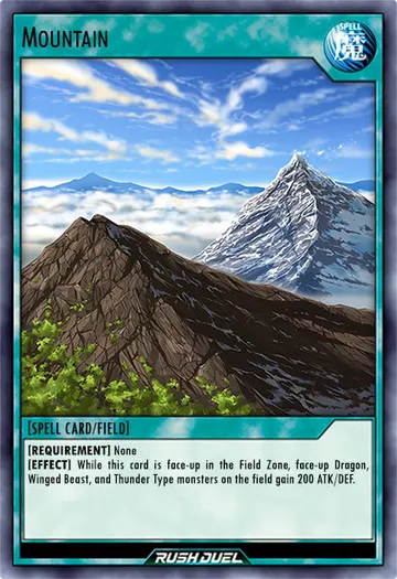 [REQUIREMENT] None [EFFECT] While this card is face-up in the Field Zone, face-up Dragon, Winged Beast, and Thunder Type monsters on the field gain 200 ATK/DEF.